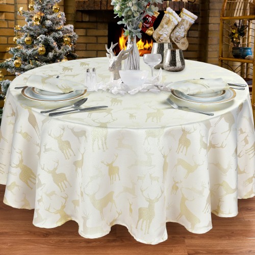 Large Stag Cream/Gold 70" RD - Xmas Table Cloth Range