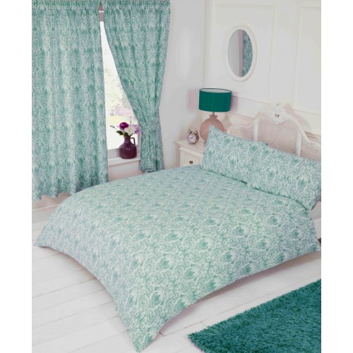 Annette Duck Egg - 66" x 72" Curtains & Tie-Backs Tape Top Poly..