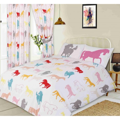 Horses White - Double Bed (1x double bed duvet cover, 2x pillow cases)   Kidz Kolle..