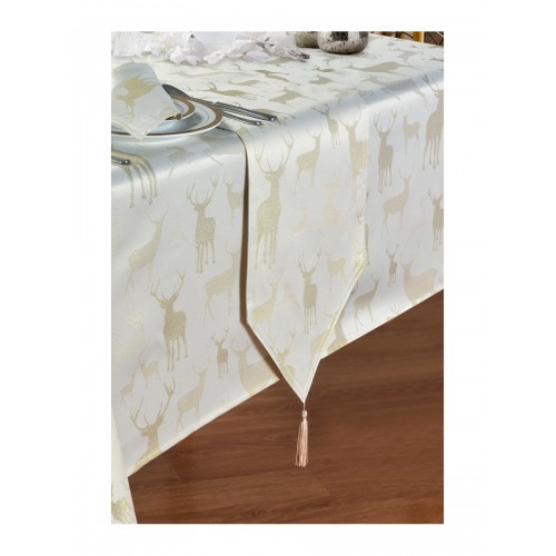 Large Stag Cream/Gold Table Runner - Xmas Table Cloth Range